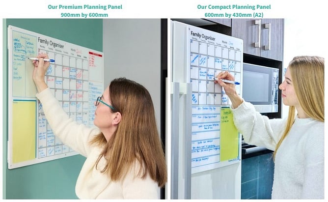 For many households, yes. The Compact A2 size works beautifully when wall or fridge space is limited, or when your family schedule is structured but not heavily layered. It comfortably holds a monthly overview, the current week and reminders in one clear view.